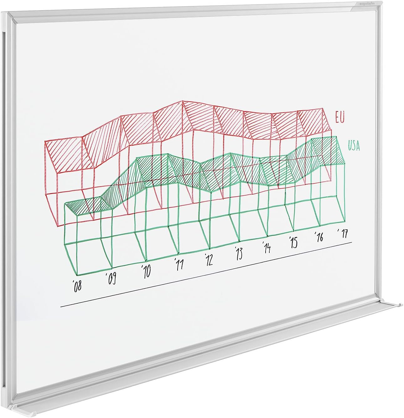 Das magnetoplan Design-Whiteboard SP ist die ideale Lösung für alle, die Organisation und Effizienz anstreben. Mit seiner spezialllackierten Oberfläche bietet die Tafel eine ausgezeichnete Schreib- und Memofläche, auf der Sie problemlos Fotos, Visitenkarten und Notizen mit Magneten anbringen können. Die kompakte Größe von 600 x 450 mm macht es perfekt für verschiedene Räume, sei es im Büro, Klassenzimmer oder zu Hause. Es verspricht eine lange Lebensdauer, mit 5 Jahren Oberflächen-Garantie. Die einfache Montage ermöglicht eine schnelle Nutzung, wodurch sofort die Produktivität und Organisation verbessert werden kann. Diese Magnetwand erleichtert Ihnen das Verwalten Ihrer Gedanken, Ideen und Termine und fördert kreative Prozesse sowie die Planung und Priorisierung von Aufgaben. Mit Boardmarkern beschreib- und trocken wieder abwischbar.