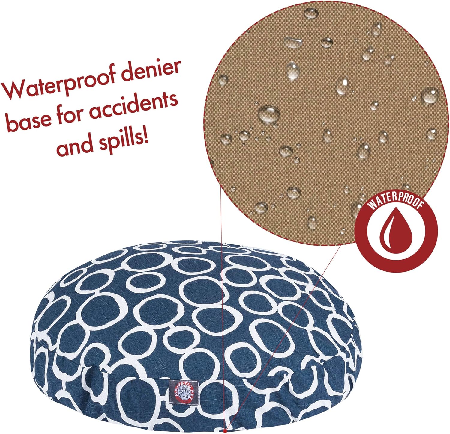 Give your furry friend a comfy place to curl up indoors. The Majestic Pet Round Pet Bed is the perfect combination of style, function and comfort. It features a removable zippered slipcover that is woven from Cotton Twill. The base of the bed is made of heavy duty waterproof 300/600 Denier fabric, which protects against spills or accidents. Each bed is filled with a super plush fiberfill that provides ample amounts of comfort. To wash: Spot clean the slipcover with a mild detergent and hang dry. Dimensions (in Inch): Small - 30 x 30 x 4; Medium - 36 x 36 x 5; Large - 42 x 42 x 5.