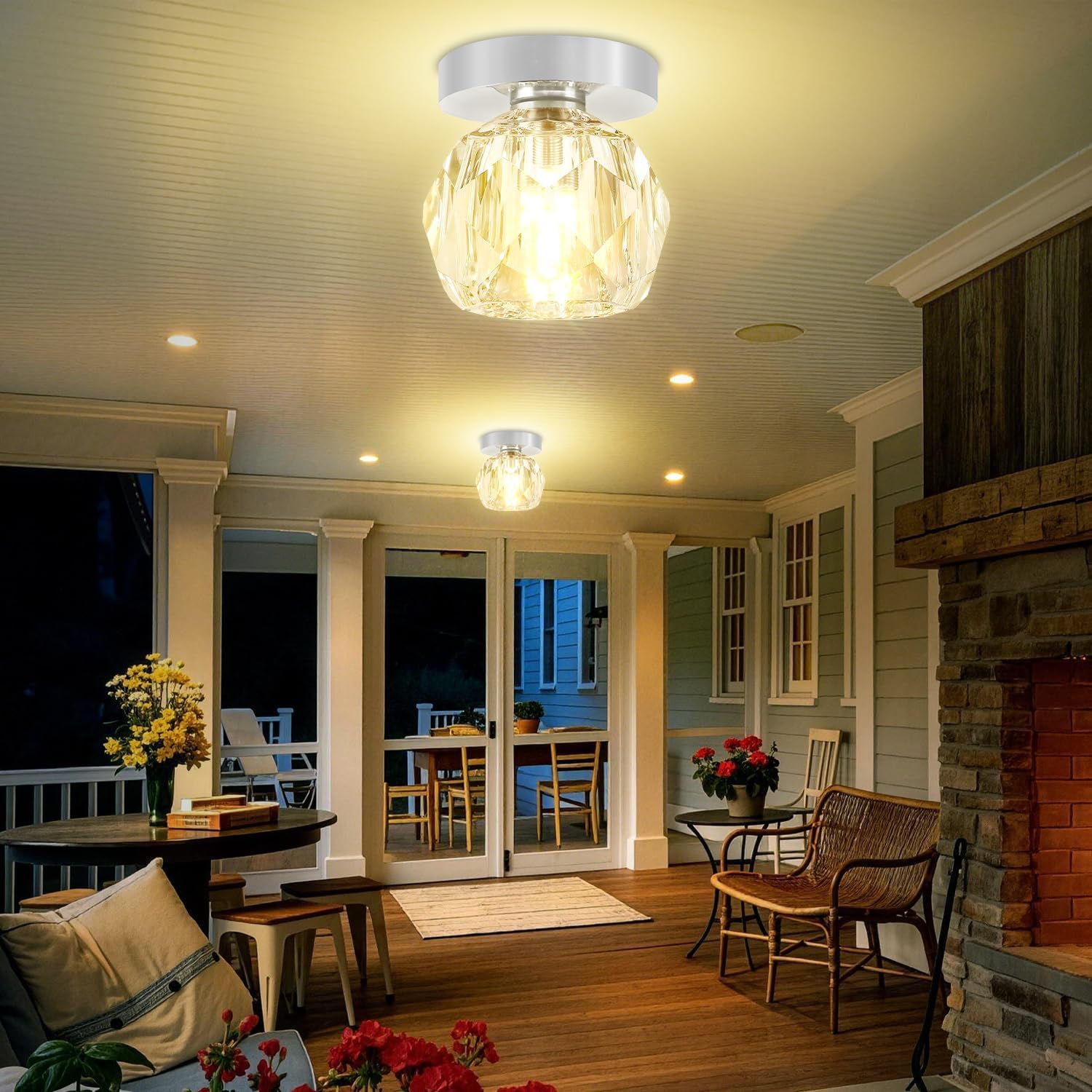 Close to Ceiling Light Fixtures Mini Crystal Flush Mount Ceiling Light for Hallway Corridor Kitchen Entryway Bedroom (Black, 5.9in)