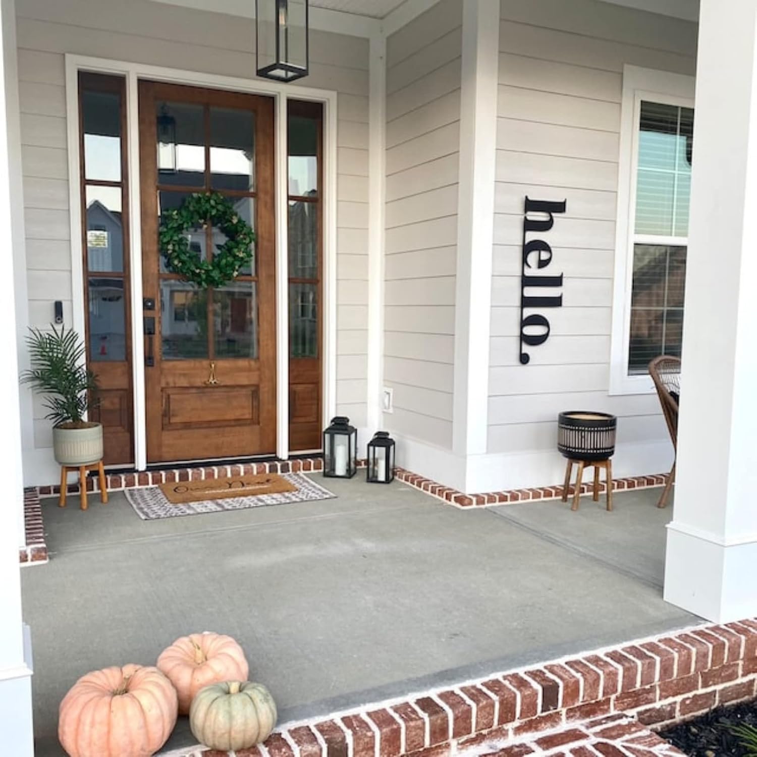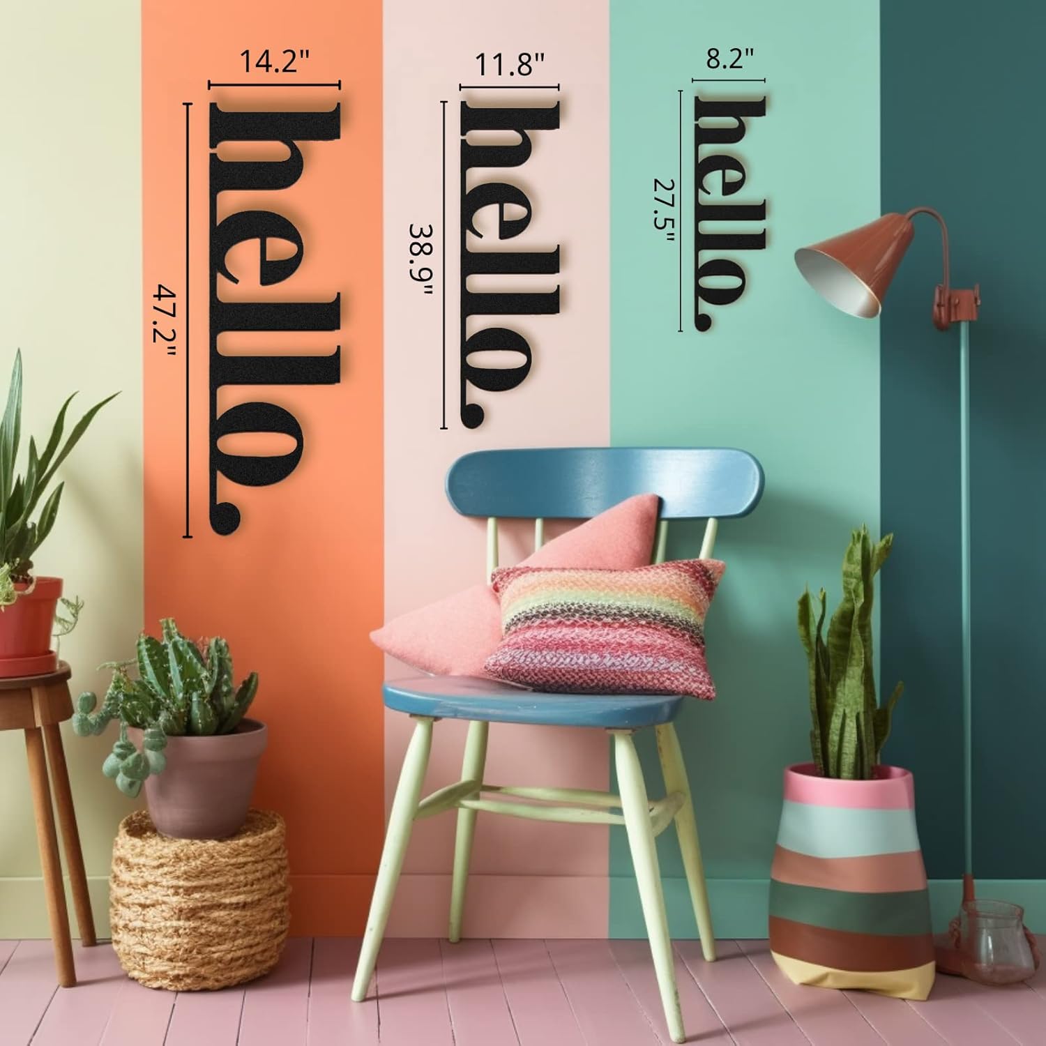 Metal Hello Sign, Metal Wall Decor, Vertical Outdoor Metal Wall Art, Front Door Decor, Front Porch Decor, Welcome Sign, Front Door Sign, Housewarming Gift ① This great metal wall decor looks like floating which creates an interesting drop shadow and 3D effect. ② Exquisite hand-drawn and precision-cut hollow design, paying attention to quality and detail. ③ There are small holes on the top, which can be easily hung on indoor and outdoor walls. About the product: Color: Electrostatic powder coating (matte) - Black or White. Product Material: 2 mm steel - Quality Lightweight 16 Gauge Steel. Easy to Install: The product stands 0.8" - 2 cm away from the wall. You just need a nail on the wall for each panel. Metal Wall Decor Dimensions: ●27.5" x 8.2" | 70 x 21 cm ●38.9" x 11.8" | 99 x 30 cm ●47.2" x 14.2" | 120 x 36 cm Care instructions: Our products are made of steel/metal, and powder coated to last for years to come. This means that most of my products are shatterproof and UV-resistant! Clean with mild soap and water. Why powder coating instead of other painting methods? Powder Coating is more durable and safe for the environment. It gives consumers, businesses, and industries one of the most economical, longest-lasting, and most color-durable quality finishes available on virtually any type of metal. Powder-coated surfaces are more resistant to chipping, scratching, fading, and wearing than other finishes. Provide Consumers with The Best Service: For us, selling is not only selling products but also providing services. If you encounter any problems in the process of using the product, please contact us, we will solve it for you.