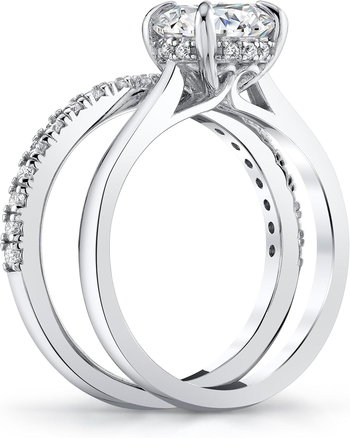Celebrate your love with this exquisite 2 Carat Round Moissanite Bridal Set. Featuring a 1.5 Carat D Color VVS Clarity center stone with GRA certification, this engagement ring is designed to dazzle.