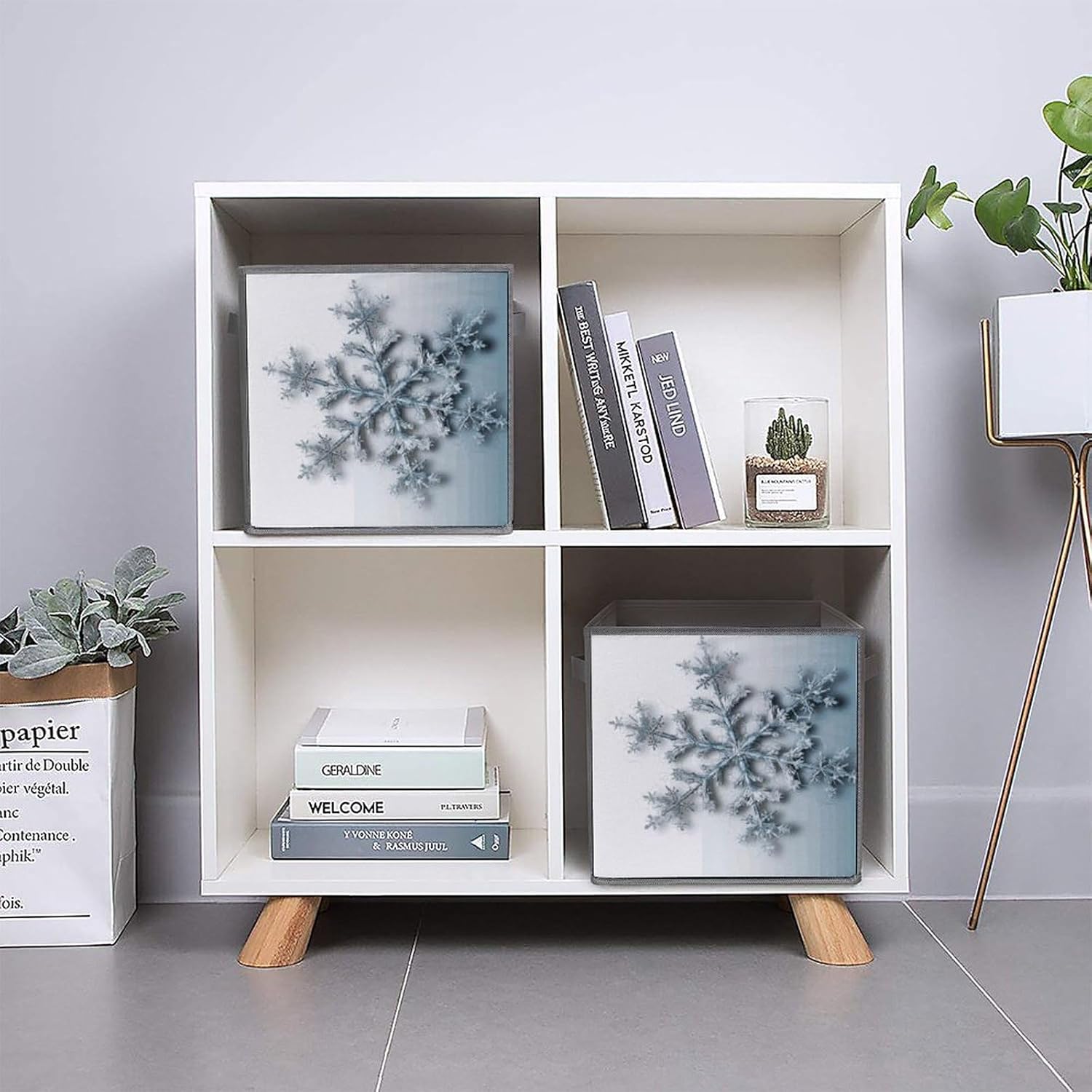 Transparent Snowflake printed Fabric Storage Bin Provides An Effective Solution For Storage And Organization. Can Maintain The Orderliness Of Household Items. Large Storage Bags Are Perfect For Storing Clothes, Baby Products, Towels, Toys, Pet Supplies, And More. Foldable Cubes Storage Bag Is Made With A Unique Style, Exquisite Details, And Craftsmanship. Clothes Organizer Container Is Perfect As A Holiday Gift For Friends And Family