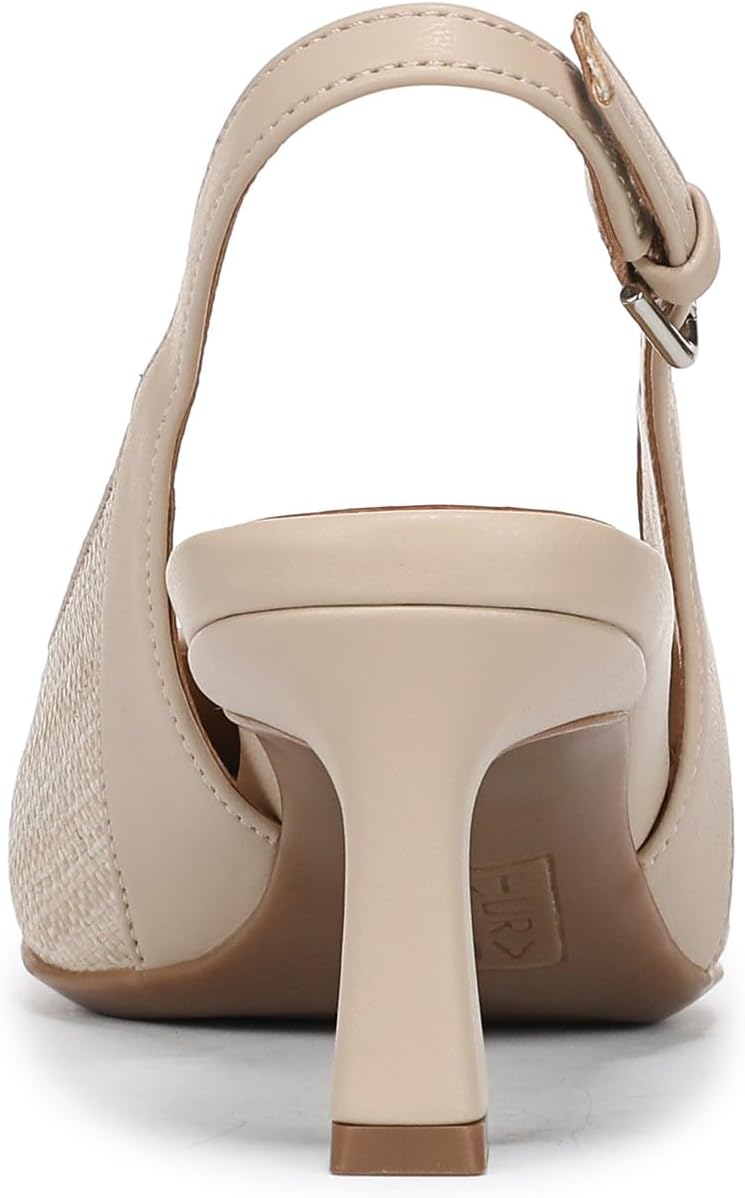 Sophisticated heels with interest: A slingback strap, snip toe and mixed material upper. Choose from both medium and wide width heels for women. Elevated dress shoes for women with flared heel. Synthetic/microfiber or synthetic upper with a snip toe. Adjustable buckle closure. Contour+ Comfort technology for a premium fit and all-day comfort experience. Non-slip outsole. 2 1/8 inch heel. Consciously packaged: 100% of our shoe boxes are made of 80% recycled paper + soy-based ink. Designed using sustainable materials. WHY YOU’LL LOVE IT: Forever elegant silhouettes with all day wearability, available in an inclusive range of sizes and widths. Designed to the contours of a woman’s foot. The Beautiful Fit. Since 1927.