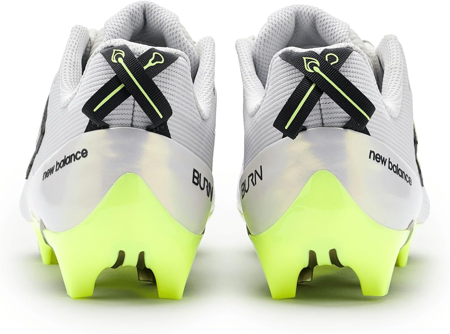 • X shaped heel tab with a lacrosse stick and match graphic to represent the Burn line