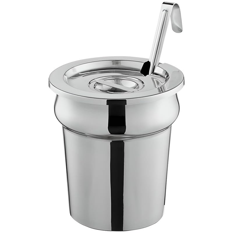 Upgrade your kitchen setup with the OCS Parts Stainless Steel Inset Pot with Cover and Ladle, a versatile and durable solution for preparing and serving soups, sauces, stews, and more. Designed with commercial kitchens and home chefs in mind, this set includes a high-quality stainless steel inset pot, a tight-fitting notched lid, and a portion-control ladle. Whether you’re using it on a stovetop, in a steam table, or in a soup warmer, this set is perfect for keeping food warm and ready to serve. Crafted from premium stainless steel, both the pot and ladle are built to withstand the rigors of frequent use, ensuring long-lasting durability. The mirror-polished finish adds an elegant touch to any setting, making it suitable for front-of-house display in buffets or catered events, while its heavy-duty construction guarantees reliability in back-of-house operations. The stainless steel material is also rust-resistant and easy to clean, reducing maintenance and replacement costs over time. The notched lid is a key feature that enhances both heat retention and convenience. It allows you to store the ladle inside the pot while keeping it covered, reducing spills and keeping your serving area tidy. The ladle’s hooked handle rests securely on the edge of the pot, preventing it from slipping into the food. Additionally, the capacity is engraved on the ladle’s handle, making it easy to portion out servings with precision. Whether you’re serving stews, gravies, or hearty soups, the OCS Parts Stainless Steel Inset Pot is versatile enough for any foodservice establishment. Its compatibility with steam tables, soup warmers, and stovetops makes it ideal for restaurants, buffets, and catered events. The bright mirror finish and sleek design make it a professional choice for serving in front-of-house environments, while its durability ensures dependable performance during busy shifts. For added convenience, the pot, lid, and ladle are dishwasher safe, ensuring quick and easy cleanup.