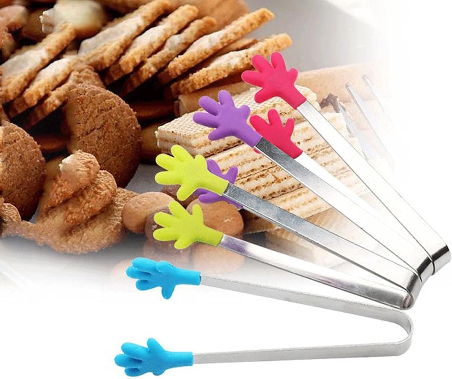 Material: and easy to clean Material: Stainless steel, silicone Size: Shell: L*W 12.5*2.8cm(4.92*1.1in) Palm: L*W 13*2.5cm(5.12*0.98in) Round flower/Heart: L*W 12.5*3cm(4.92*1.18in) Package Includes: 1 x Food tongs