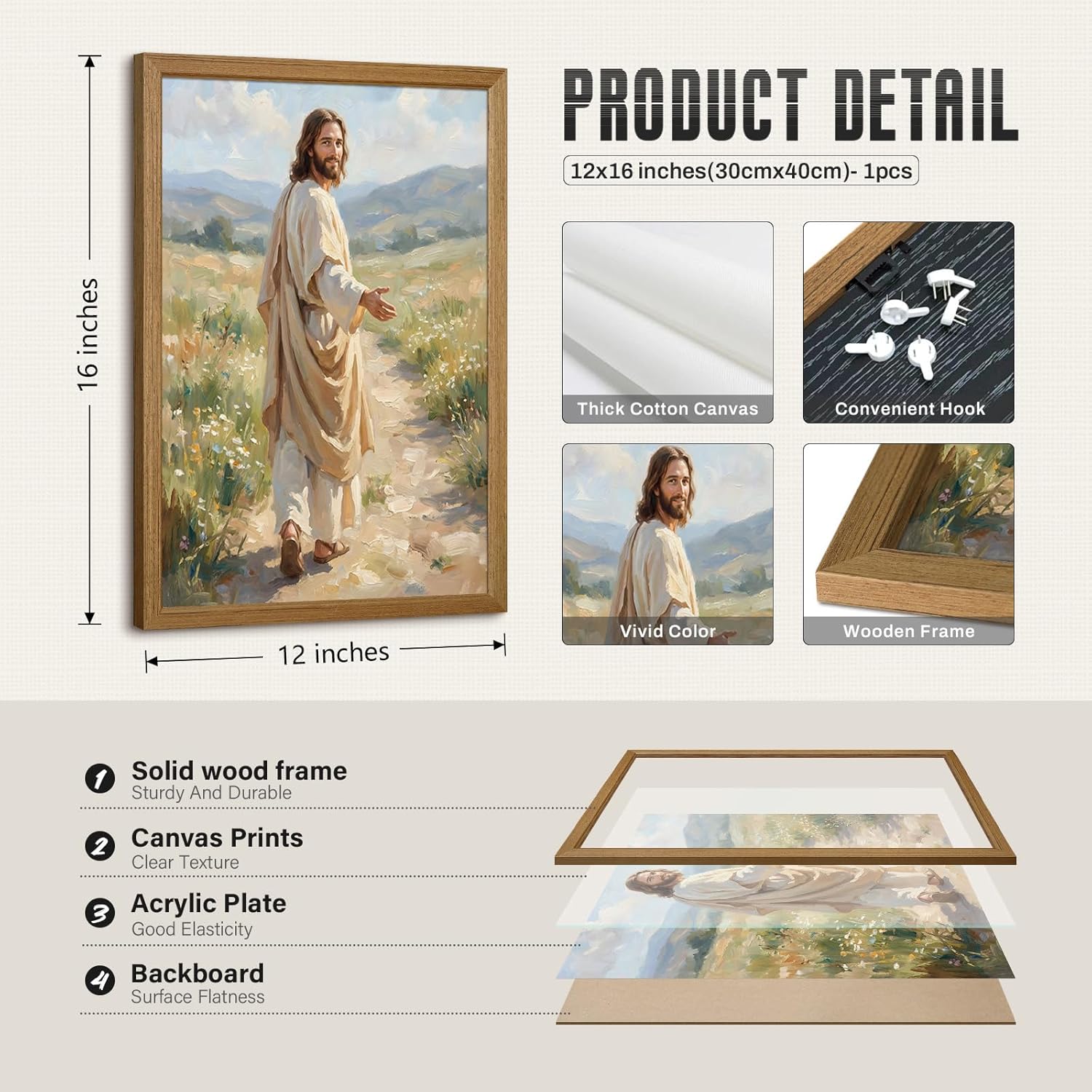 Transform Your Space with Premium Canvas Wall Art! Elevate your home decor with our stunning canvas prints, designed to add a touch of elegance to any room. Each art is crafted with meticulous attention to detail that captivates every viewer. Product Details: Size : 12x16 inch framed — Ideal for living room focal points Material:durable wooden frame and high quality canvas What are the advantages of our art? Our wall art resists fading, cracking, and moisture. The textured canvas surface enhances color depth, providing a luxurious gallery-like finish. Are our art framed or unframed? Ready-to-hang framed! Every art comes with a sturdy, lightweight wooden frame . The hooks and pre-installed hardware make mounting effortless—just unpack and display! Important Notices: 1.Care Instructions: Gently dust with a dry cloth. Avoid direct sunlight or high humidity to preserve color integrity. 2.Due to our canvas are hand-cut, please allow an error of less than 2 mm. 3.Framed! Our products have frame .