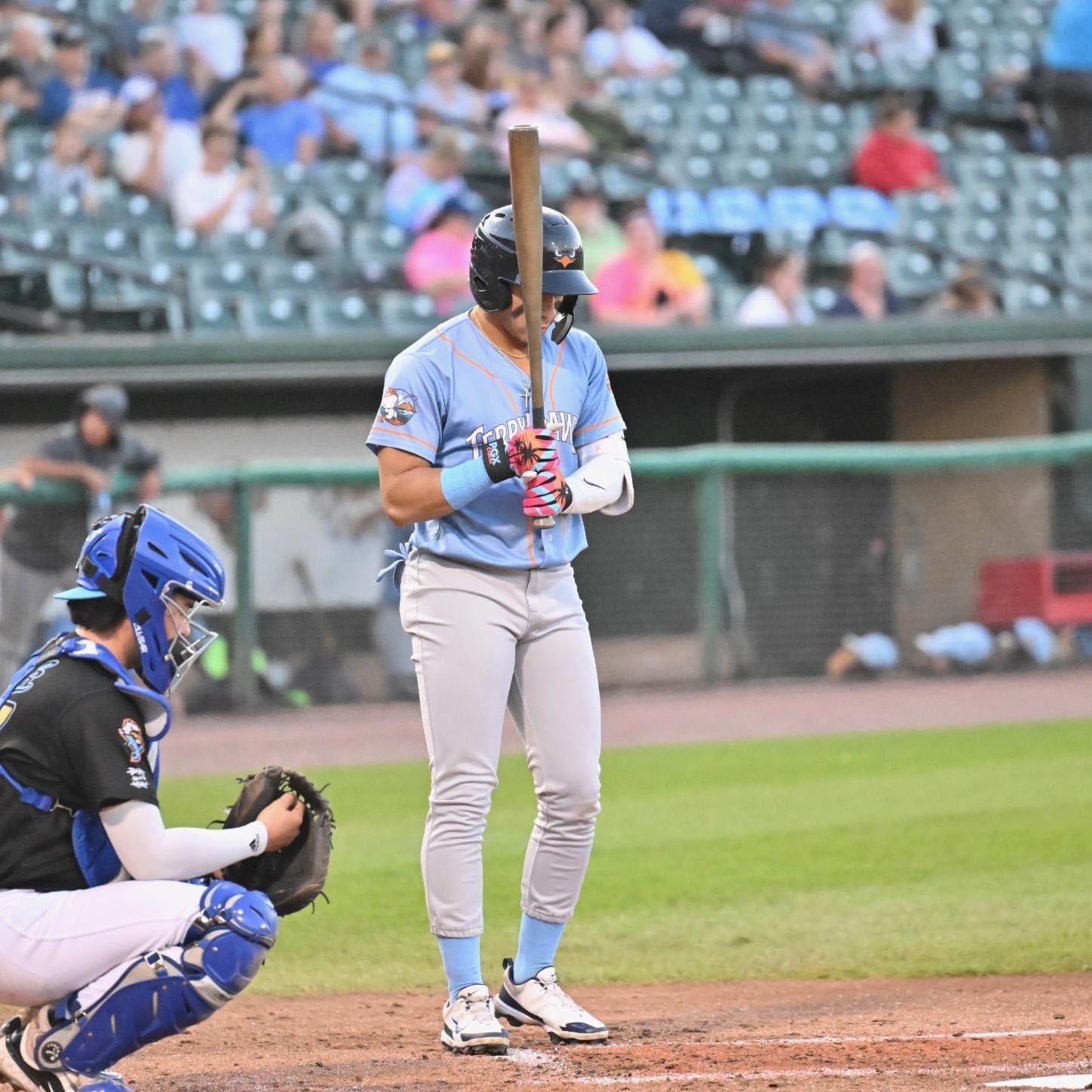 PGX YOUTH AND ADULT MIAMI VICE BASEBALL BATTING GLOVESYour Baseball player needs a set of gloves that can handle everything the game throws at them without bulkiness. Baseball/Softball Batting Glove is a flexible, multi-functional batting glove with an athletic fit, feel, and look. We took our industry leading wrist support to the next level, with a wide strap that wraps completely around your wrist for even more support. Itโs the ideal batting glove providing protection and a state-of-the-art grip. Weโve designed the baseball gloves with a digitally-etched material for a superior grip that lets you feel every swing and connection with the ball. The durability of European pitted leather connects with the Lycra fabric for a hybrid construction that gives you targeted strength and sensitivity exactly where you need it for peak performance. Gloves are the most durable, tough, weather resistant, war tested high performance batting gloves on the market. Its durable stitching means it will last through endless innings. Each pair of Adult & Youth Batting Gloves fits snugly against the skin, so the hands can still flex and feel as perfectly as if they were bare. Most importantly, you get top-notch flexibility that keeps your grip on the bat firm. With multiple sizes available, you can find the ideal fit for yourself. When it comes to batting, gloves are crucial to prevent sweaty hands from losing their grip on the bat. Our wide variety of sizes allows you to find the perfect fit and makes the gloves an ideal choice for young, constantly-growing ball players. Whether youโre grinding out hundreds of swings in the cage day after day, using them for your gamers, or both, these gloves are becoming recognized in the baseball world.SPECIFICATIONS:Material: Spandex, Silicone, Neoprene, LeatherSport Type: BaseballBaseball Gloves Color: MultiHand Orientation: AmbidextrousClosure Type: HookGloves Style: Cuff