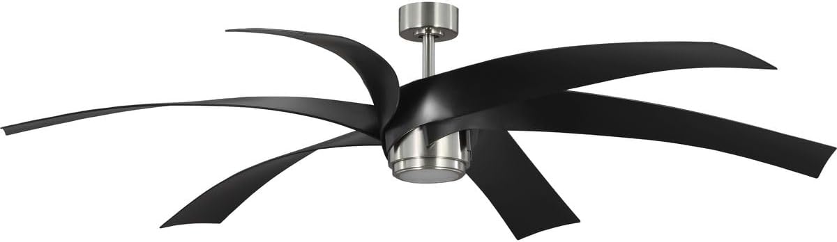 Enhance your indoor living space with the 72-inch, 6-Blade Insigna LED Ceiling Fan, a harmonious symphony of design and innovation. Measuring an impressive 72 inches, this ceiling fan is a true statement piece that commands attention. Its unique windmill-style ABS blades attached to a luxe metallic housing offer a fusion of contemporary aesthetics and innovative engineering. Coated in a subtle Brushed Nickel finish with Matte Black Blades, this sleek fan effortlessly creates a breathtaking visual impact. An LED light kit is included and pairs well with the whisper-quiet DC motor. A full-function remote control is included.