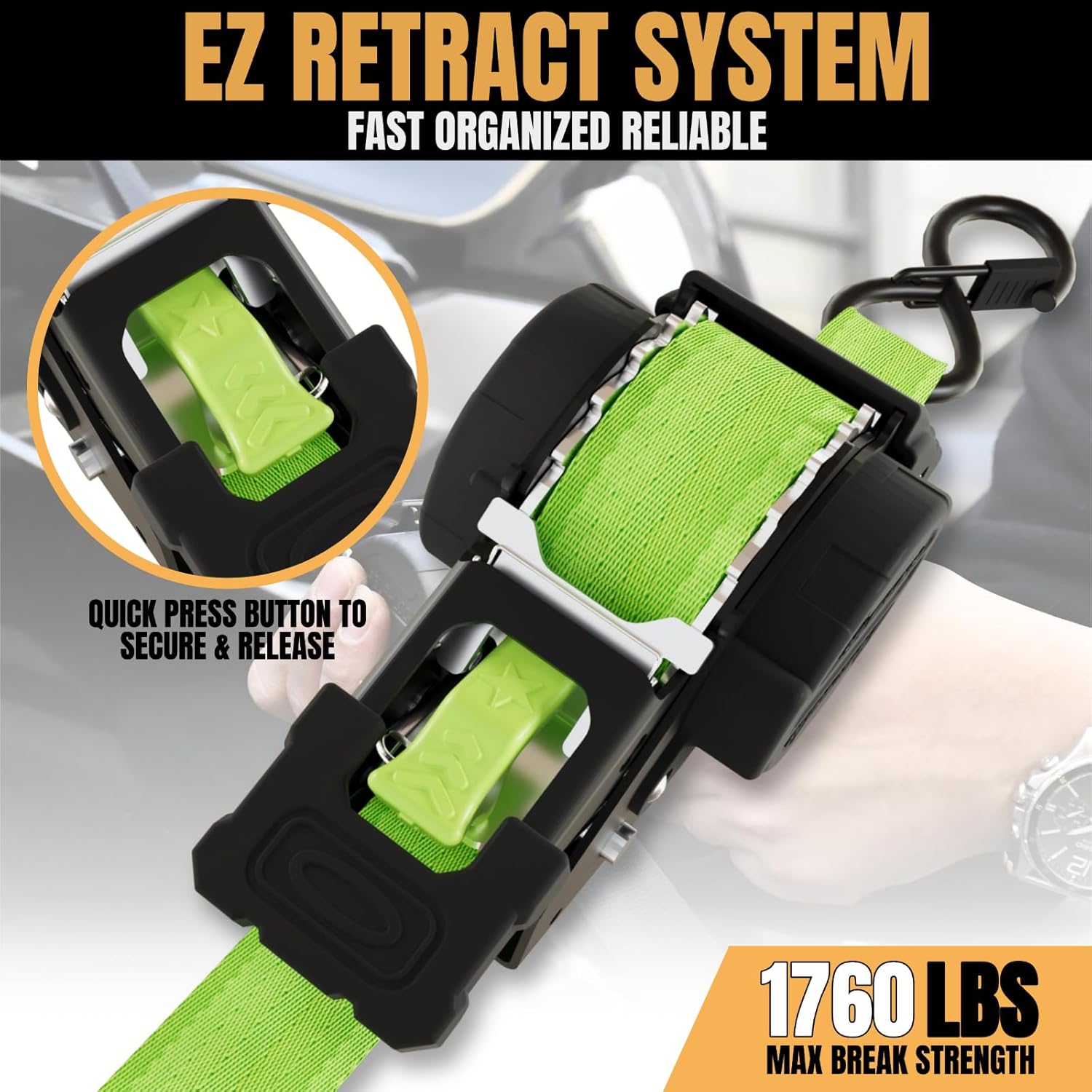 | Included Components | 1*BRAND STORAGE BAG, 1*USER MANUAL, 4*RETRACTABLE RATCHET STRAP, 4*SOFT LOOP TIE DOWN STRAP |