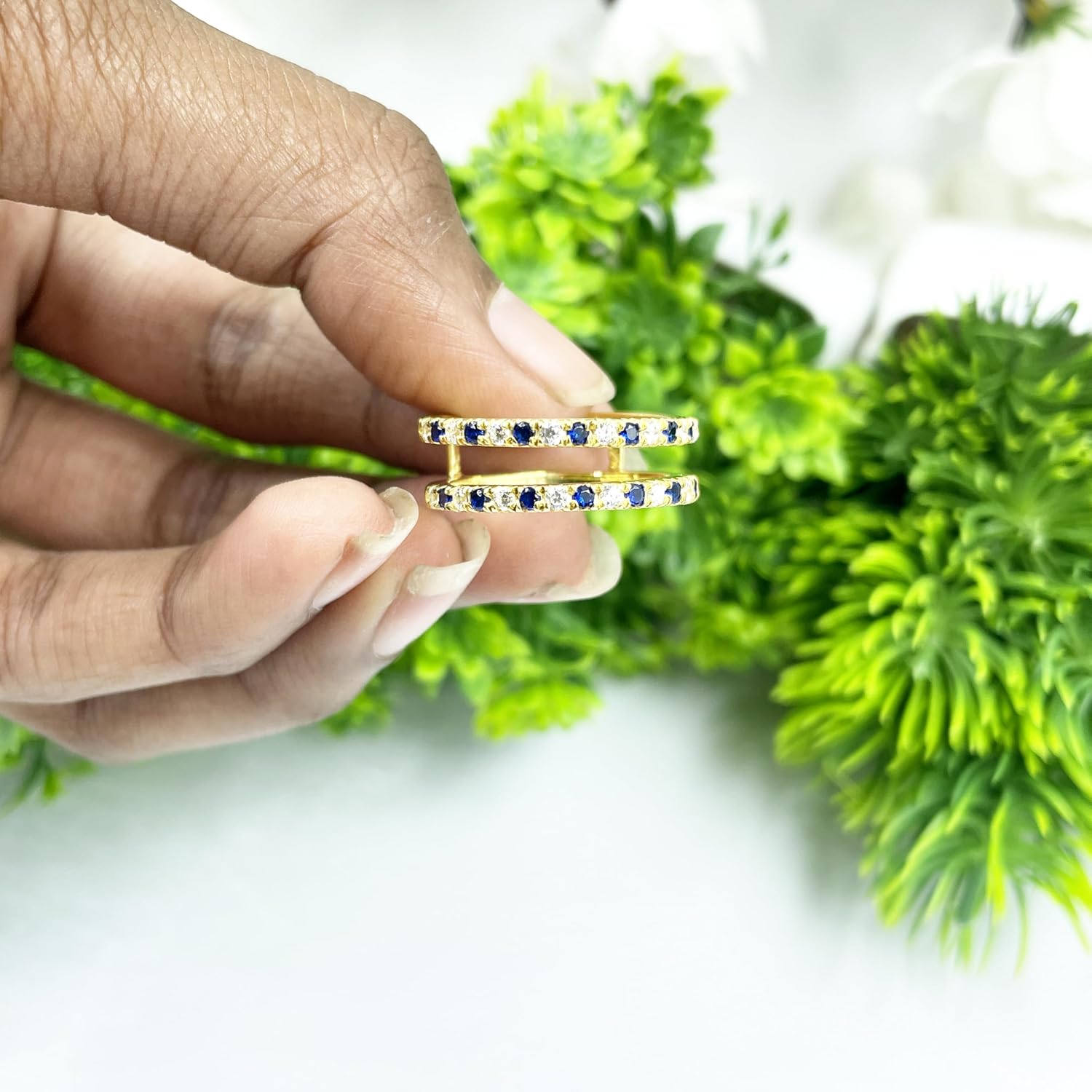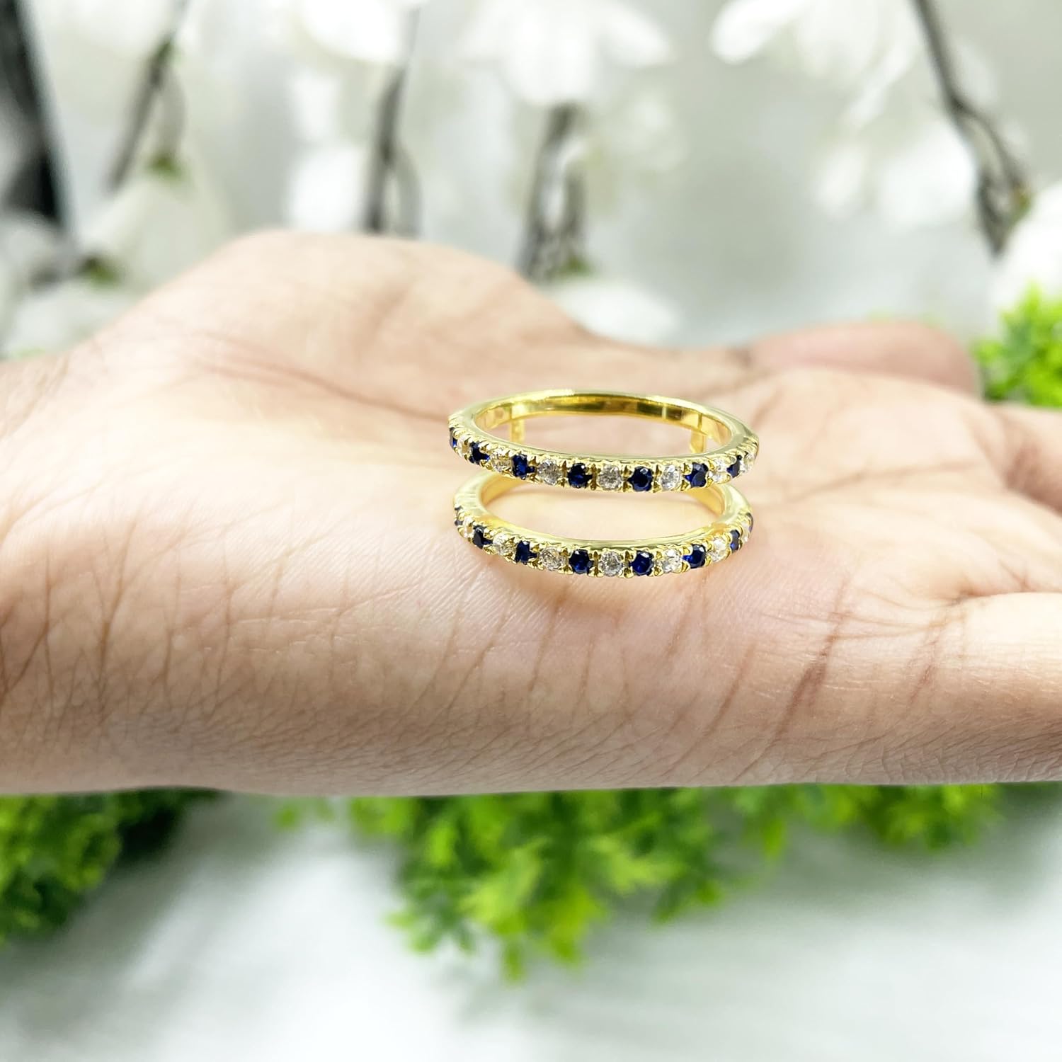 This Handmade Enhancer Guard Matching Band is made from high-quality 925 sterling silver, known for its lustrous appearance and durability.. It is available in 14K White, Yellow, and Rose Gold Plating with Highly Glossy Finished. It features Simulated Round Cut Blue Sapphire & Diamond Stones set in Prong Setting. The Enhancer Guard Matching Ring is easy to use, Perfect for any occasion.