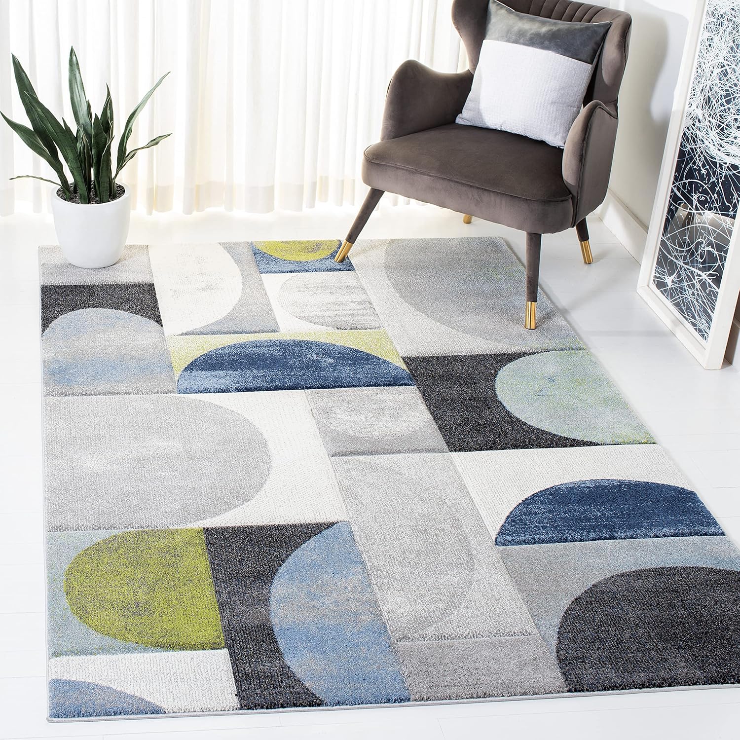 | Model Name | SAFAVIEH Hollywood Collection HLW798F Mid-Century Modern Non-Shedding Living Room Dining Bedroom Area Rug 8' x 8' Square Grey/Blue |