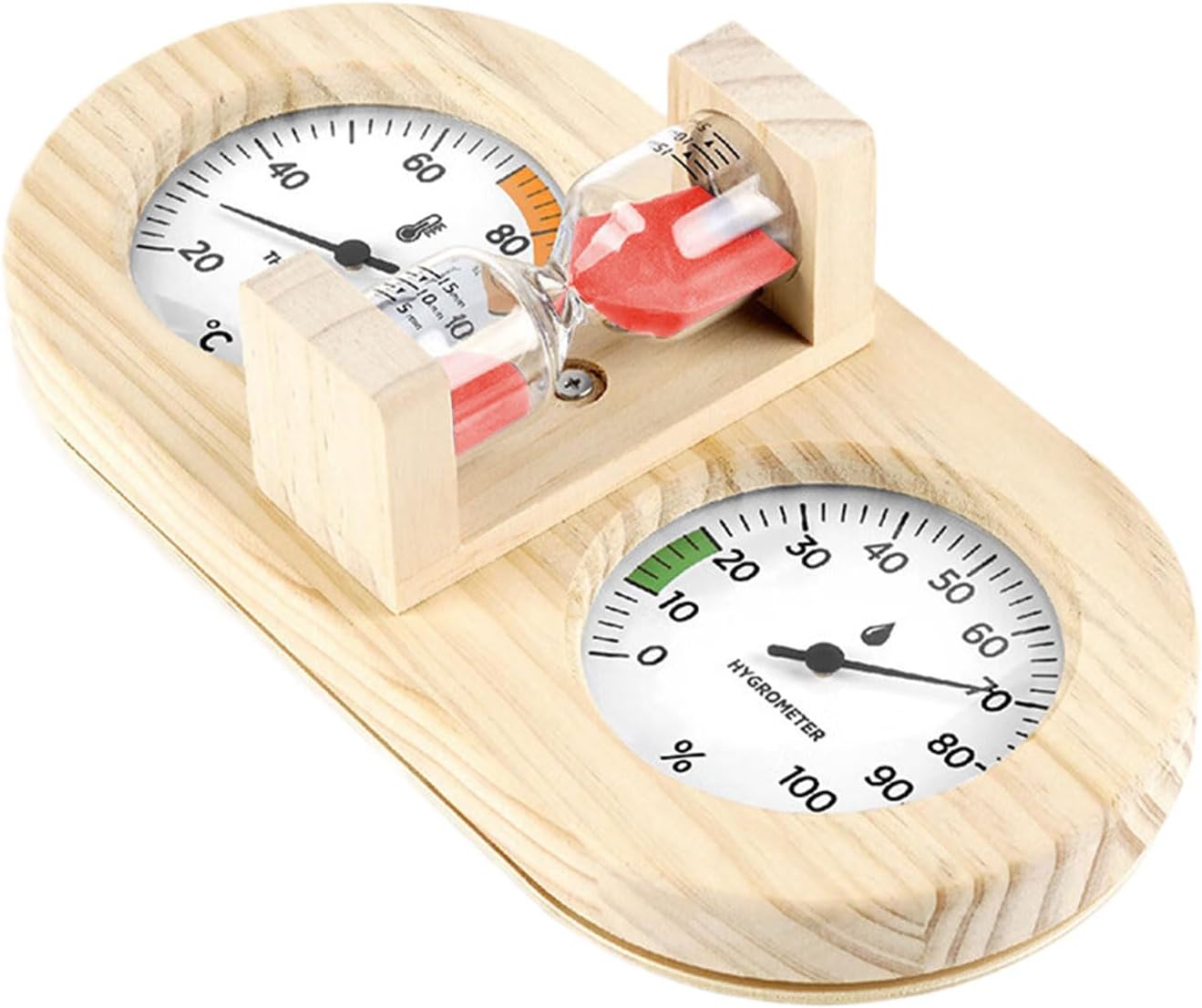 Sauna Room Wall Mounted Thermometers Hygrometer Clear Room Temperature Humidity Meter with Sand TimerFeatures:This sauna hygrometer thermometers with sand timer combines precise temperature/humidity and time management in natural pine wood, eliminating battery needs while blending seamlessly into rooms.Features large font analog dials for readability, mechanical sand timer for control, and knotty pine construction that resists warping in high heat sauna environments.Ideal for home sauna owners, spa operators, and elderly users needing clear of environmental conditions during heat.Perfectly suited for integration in saunas, and commercial wellness facilities requiring analog The wooden hygrometer merges Scandinavian sauna tradition with functional double scale measurement a natural centerpiece that enhances through visible room metric and timing.Specifications:Component: WoodTemperature Ranges: 20-120℃Humidity Ranges: 10-100%Timer: 15 MinutesSize: about. 290x30x140mm/11.42x1.18x5.51inColor: 3 color optionalPackage Includes:1pc Thermometers HygrometerNote:Does not require batteries.Please allow 1-2cm errors due to manual measurement. Due to difference between different monitors, the picture may not reflect the item actual color.
