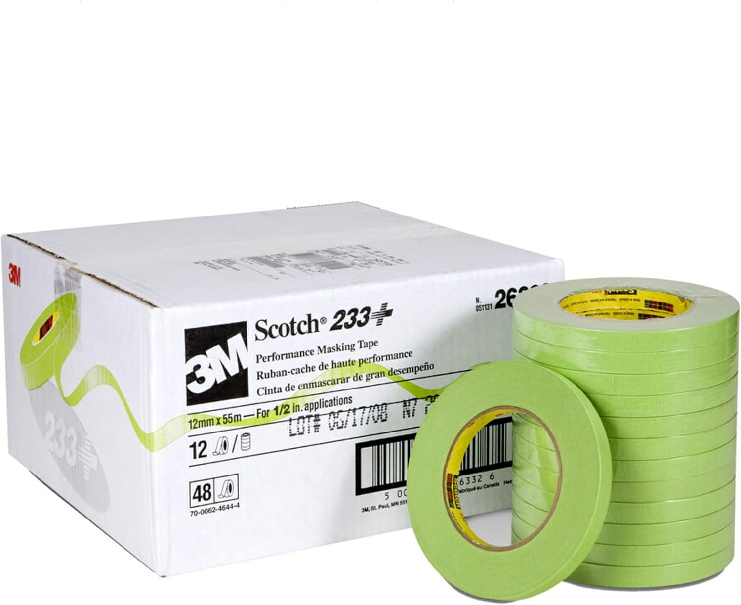 | Item Type Name | SCOTCH PERFORMANCE MASKING TAPE 233+, 26332, 12 MM X 55 M, 48 PER CASE |