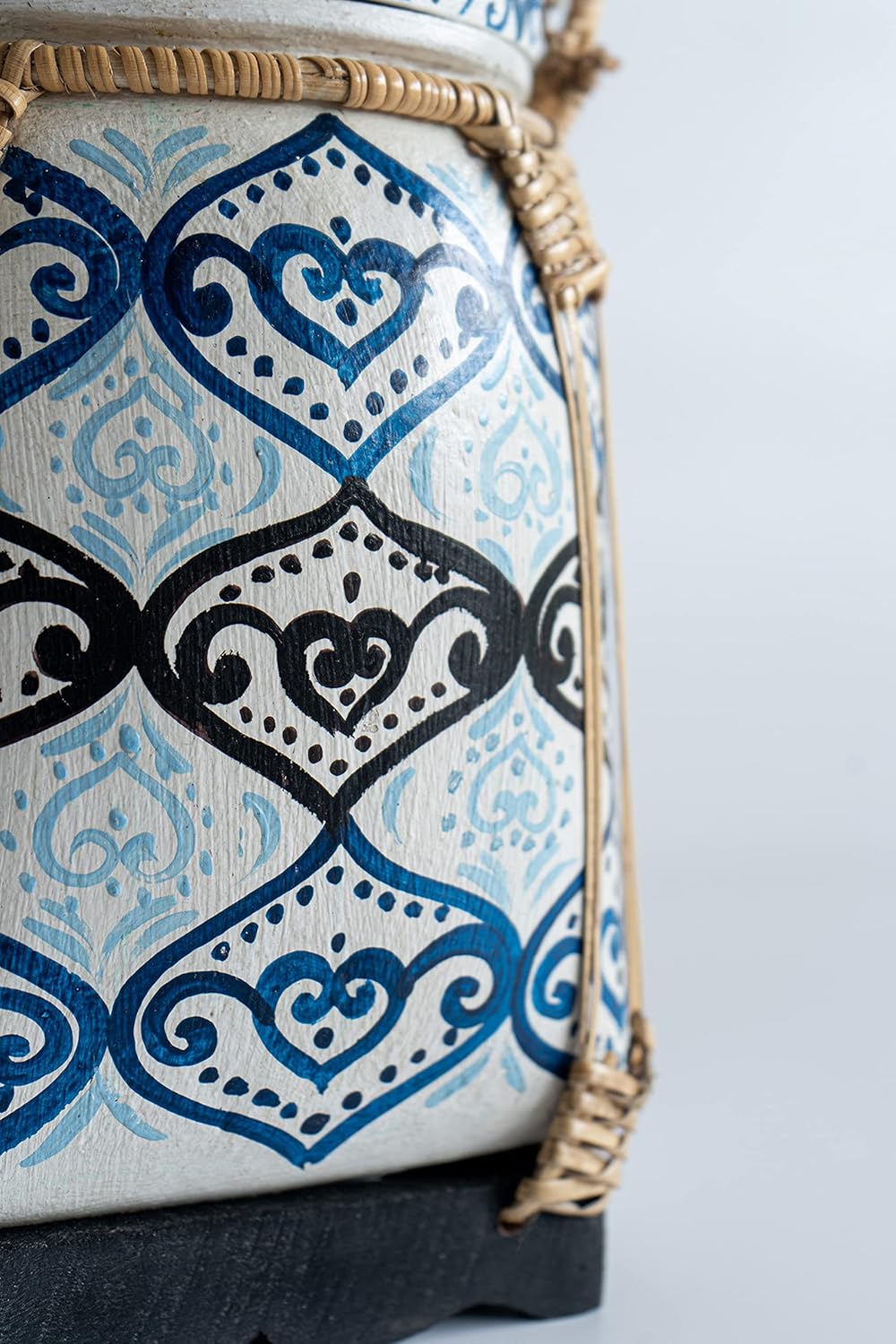 This lovely hand weaved baskets were traditionally used to carry lunch to the field. By adding layer of clay all around the basket while preserving the beautify of natural weaved bamboo inside the basket, it was now possible to paint them! Since then, they've become pieces of Art to display and/use in any room of your home.