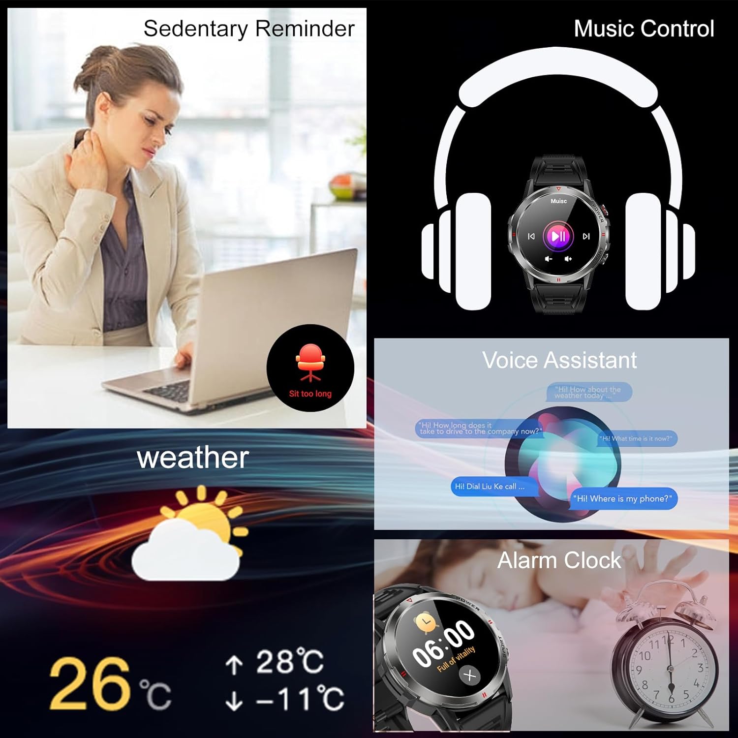 | Supported Application | Alarm, Fitness Tracker, Multisport Tracker, Voice Assistant, Weather |