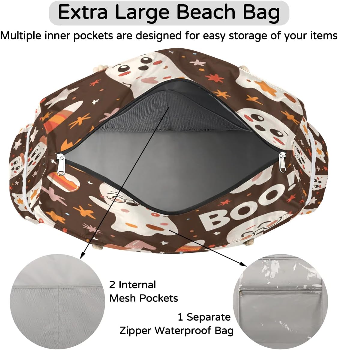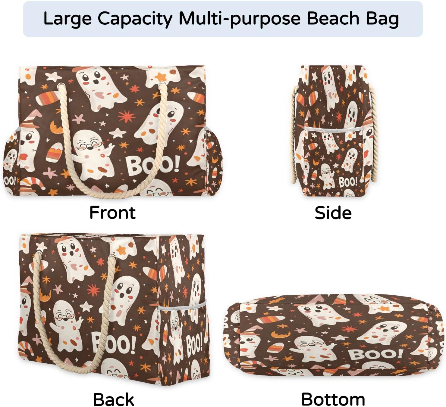 Name: Beach Tote BagProduct Size: 20.5*7.3*15 inchesProduct Features:1-Crafted from durable, washable, waterproof polyester fabric, this waterproof and sandproof beach bag has a sturdy and comfortable knotted rope carry handle, a double zipper closure design, and is lightweight and collapsible is a very practical summer pool bag.2-Women's large beach tote bag measures 20.5x7.3x15 inches. Travel duffel bag with large main pocket has enough space to safely store your beach towel, clothes, makeup, flip flops, sunscreen and other essentials; 2 side outside insert pockets for water bottles, flip flops, sunglasses and other items. Inside the main pocket, there is a clear PVC zipper pocket on one side to protect your valuables from getting wet or damaged, and 2 mesh pockets on the other side to categorize some small items.3-Reusable grocery shoulder bag can be used as a beach bag, pool bag, gym sports bag, travel duffel bag, weekend getaway bag, summer bag, overnight bag, flight carry-on bag, perfect for camping, sports activities, yoga, fishing, cycling and more.Washing Instructions:Hand wash only. Not machine washable. Take a damp cloth or sponge and wipe the stained area. If there are more obvious stains, use a little soap and water to remove the stains, taking care to clean the soap well. Dry naturally after washing.Ideal Gift: A fashionable design good looking reusable gift bag is suitable for all kinds of festivals, bridal shower, birthday gift, Halloween, Thanksgiving, Christmas, Valentine's Day, New Year's Day, birthday, Easter.Premium Service:We are committed to providing you with a satisfying shopping experience. If you have any questions or comments, please feel free to contact us. We will reply within 24 hours and try our best to solve the problem for you and provide excellent after-sales service. Let you also feel our sincerity.