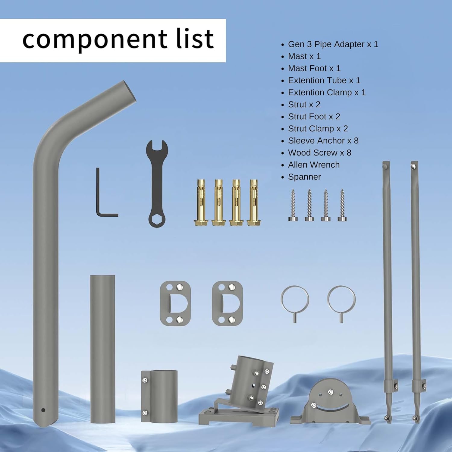 | Included Components | Mast Tube/Long Strut/Short Strut/Adapter/Hardware Bag |