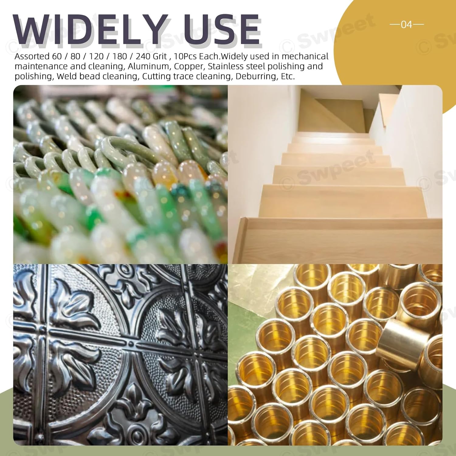 💥 Swpeet 52Pcs Finger Oscillating Multi Tool Sanding Pads Accessories Kit, Includes 50Pcs Triangle Finger Sandpapers and 2Pcs Multi Tool Finger Sanding Pads for Finishing Wood Plaster Sanding 👑 Why choose us 🏅 1. Durable materials ✨ The sandpaper is made of high-quality alumina abrasive, which can enhance durability, extend service life, and is not easy to wear and damage. You can use it for a long time without frequent replacement, reducing your trouble. 🏅 2. Multiple choice ✨ The sandpaper in this product comes in different sizes, so you can choose the sand table according to the level of cleaning or polishing you need, which can meet your different needs. 🏅 3. Easy to use ✨The universal quick release electric oscillation tool sanding pad is made of carbon steel backing plate, hook and loop back, which is easy to quickly adhere to and remove from the sanding machine. 🏅 4. Wide applications ✨ Widely used for mechanical maintenance, cleaning, polishing, welding seam cleaning, cutting trace cleaning, and deburring of aluminum, copper, and stainless steel. 👑 Specifications: ✨ Material: Aluminum Oxide ✨ Dimensions: Finger Sanding Papers Length: 2 Inches, Width: 1.6 Inches; Finger Sanding Pads Length: 3.1x 1.6x 0.4 Inches(L* W* H) ✨ 50Pcs Finger Sandpaper: Assorted 60/80/100/120/240 Grits,10 Pcs Each 👑 The package includes: ✨ 2Pcs------ 37mm x 80mmMulti Tool Finger Sanding Pads ✨ 50Pcs------ 35mm x 50mm Multitool Finger Sanding Papers ✨ In Total 52Pcs