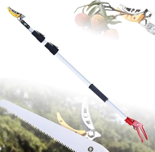 Transform your gardening and fruit-picking experience with our innovative Telescopic Pruner, designed to meet all your horticultural needs. Made from durable aluminum alloy and high-quality SK5 steel, this pruning tool offers exceptional longevity and effortless usability. With an adjustable telescopic range of 1.2 to 2.2 meters (3.9 to 7.2 feet), reaching high branches and harvesting fruits becomes a breeze, minimizing strain on your body. Picture yourself effortlessly trimming branches or harvesting fresh fruits with our easy-to-use pruner. The intuitive push-button telescopic mechanism allows for quick adjustments, ensuring you can tailor the tool’s length to your specific gardening tasks. The sharp 27 cm (10 inches) saw blade is designed to handle branches up to 10 mm (3/8 inch) in diameter, making this tool ideal for both seasoned gardeners and casual users. Crafted for comfort, the ergonomic handle provides a secure grip, reducing hand fatigue during extended use. Weighing only 3 kg (6.6 lbs), this lightweight pruner enables hours of gardening without discomfort. Whether you are pruning fruit trees, shaping hedges, or maintaining your landscape, our Telescopic Pruner delivers the reliability and performance you desire. Safety is our priority; always remember to unlock the safety lock before use and align the buckle with the round hole for optimal function. Keep the clip facing the fruit while picking to prevent any accidental drops. With its thoughtful design and impressive features, our Telescopic Pruner is not just a gardening tool—it's an essential addition to your gardening collection.