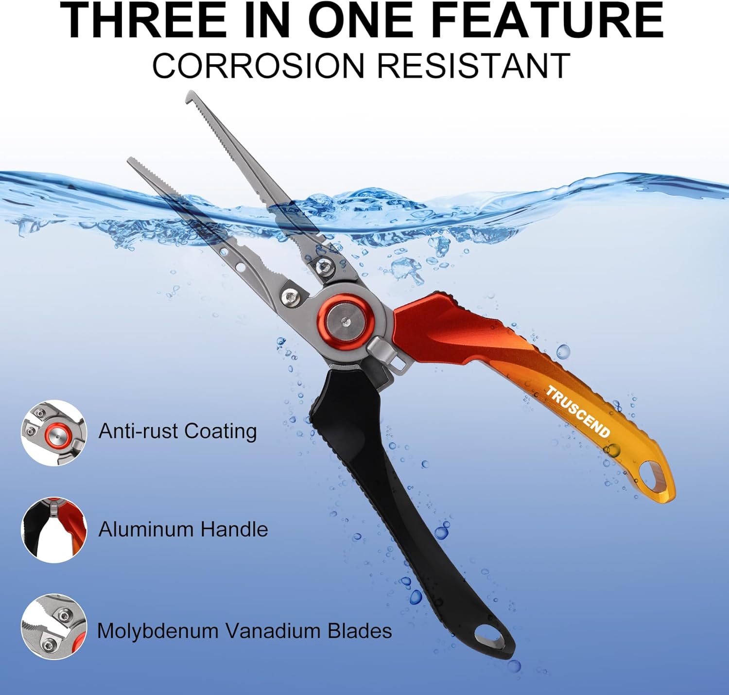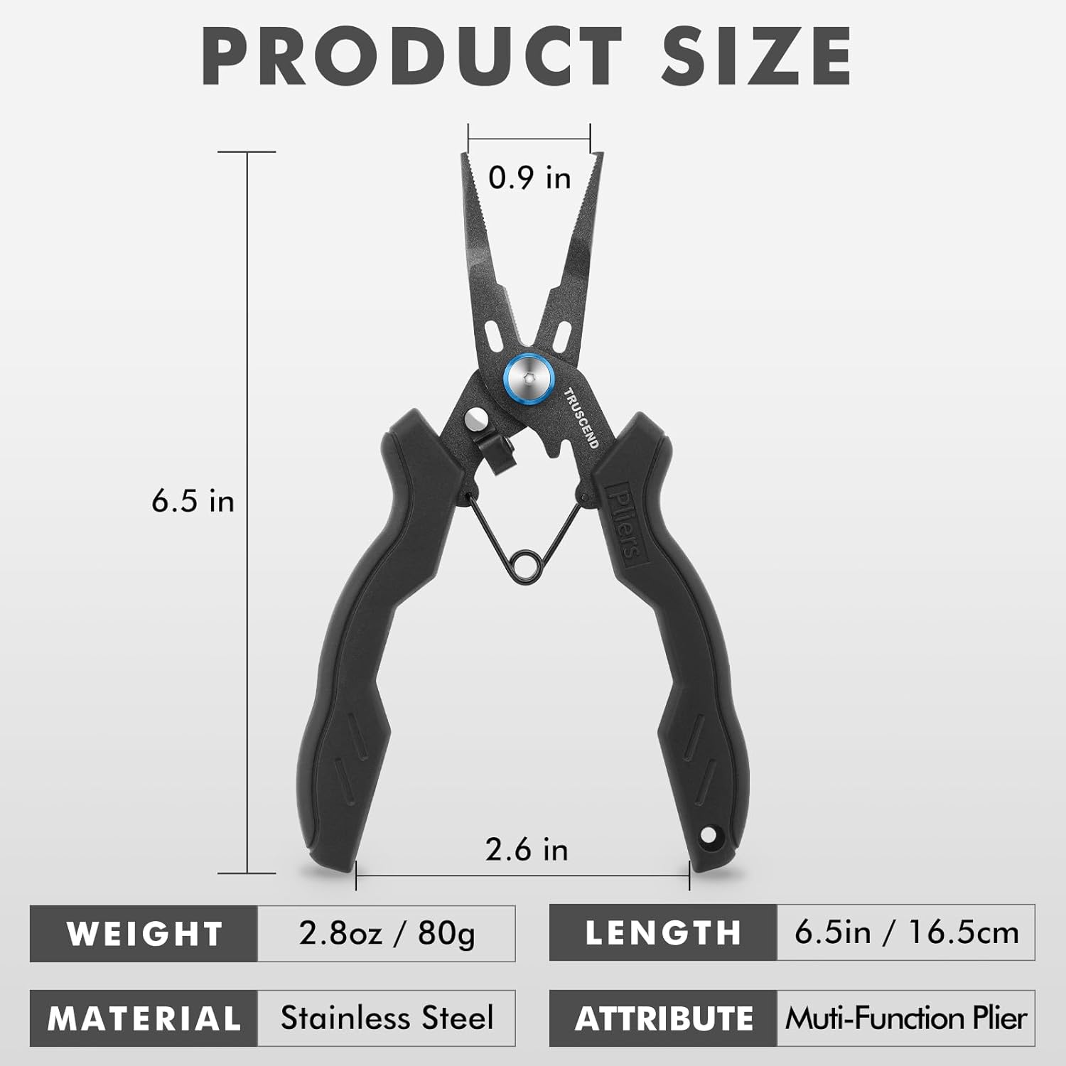 BEST MATCHED FISHING GEAR SET - Multi-function aluminum fishing pliers are equipped with light handles, function of split ring pliers, fish hook remover tool, fishing line cutter and tuning baits. More importantly, unlike ordinary spring-loaded pliers, this fishing stuff fishing tackle is designed with a unique lock switch to keep the it open and close freely with just one hand. fishing tools set delivers cutting edge performance that you can rely on for the coming years NEVER RUST AVIATION ALUMINUM - TRUSCEND exclusive upgraded design fishing pliers, using aircraft aluminum precision casting, delicate Teflon coating which offers superior protection against corrosion wear and tough environments. Service life far longer than 80% of fish pliers on the market. Ready for the harshest saltwater and freshwater environments that anglers never have to worry about rust or grime building up and ruining your fishing equipment EXCLUSIVE UPGRADE HANDLE DESIGN - An exclusive upgrade Ergonomic handle designed by TRUSCEND offer a perfect handle space to harness the strongest parts of the hand and reduce fatigue. The cool ergonomic design really helps in gripping the pliers, feeling comfortable and light in the hand. Giving you a secured grip in tough conditions. Many fishermen prefer these fishing supplies without the extra rubber/plastic on the handles as it usually hardens and doesn’t offer much grip over time GIFTS FOR FISHERMAN - Add ultralight Saltwater Aluminum Fishing Pliers Gear to your fishing tackle box. Make your hook removal much easier. the fishing pliers kit are perfect fishing gifts for men, dad, anglers, father, son, husband on Birthday, Anniversary, Thanksgiving, Christmas Etc