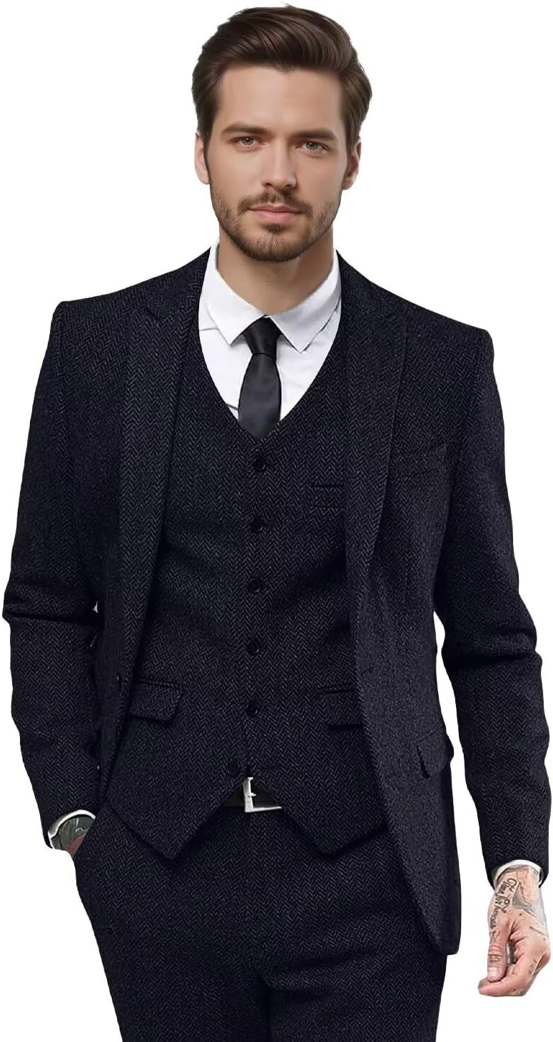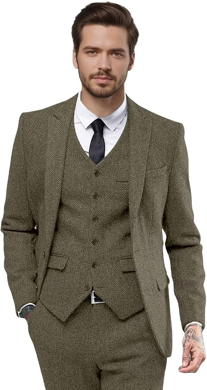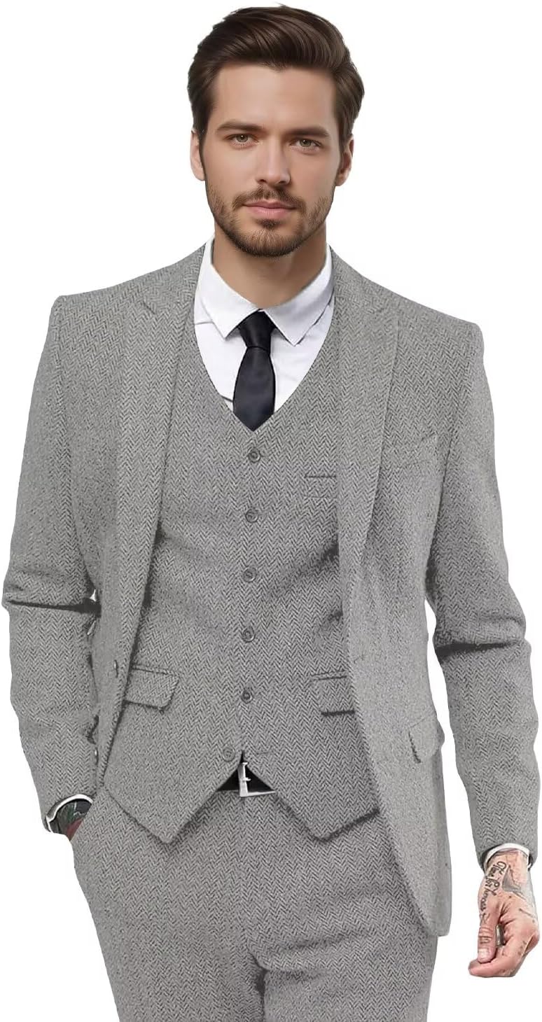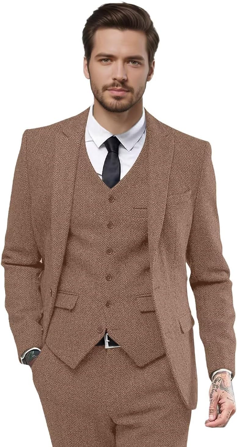 | Occasion Type | Herringbone Suit for Business, Herringbone Suits for Men Wedding, Mens 3 Piece Suit for Work, Mens Suits Classic Fit Prom, Tweed Suit Men for Party |