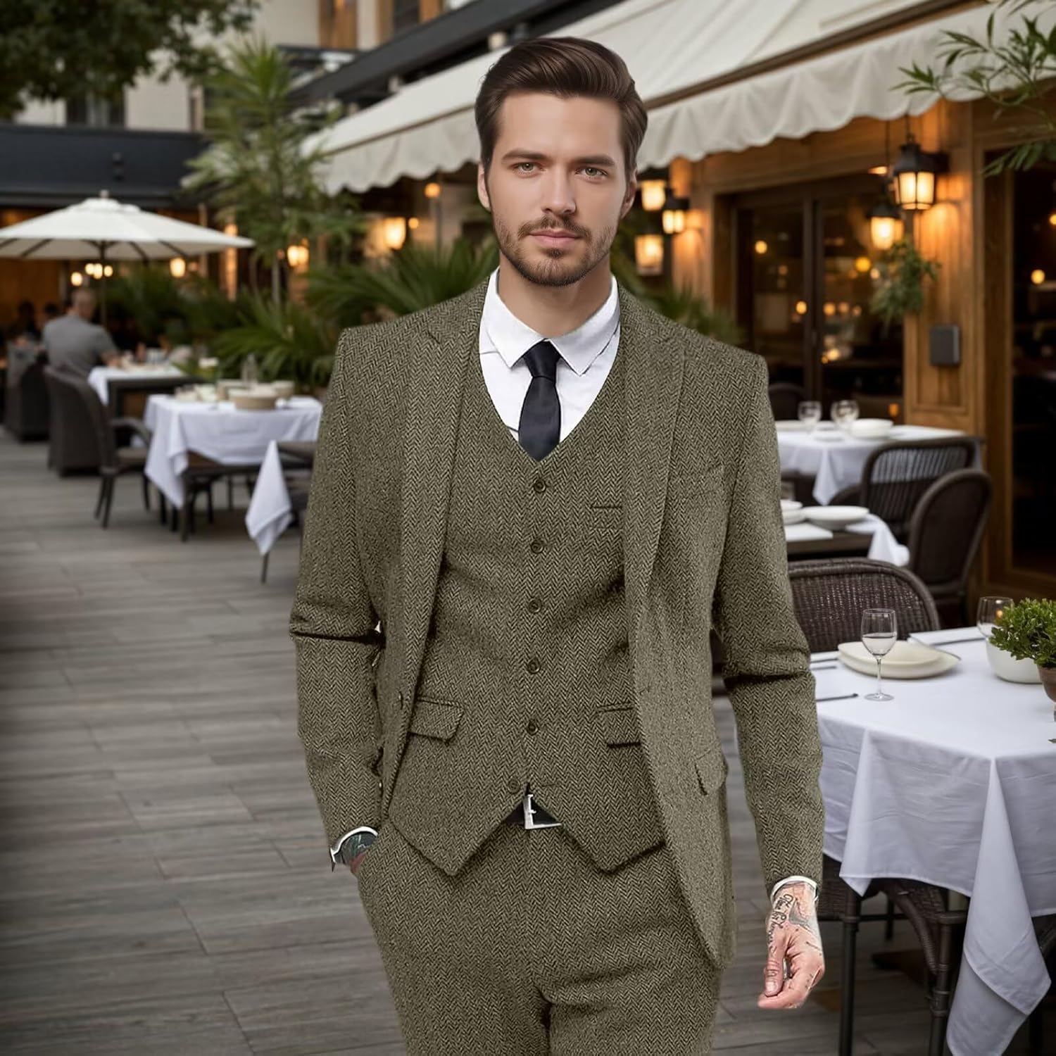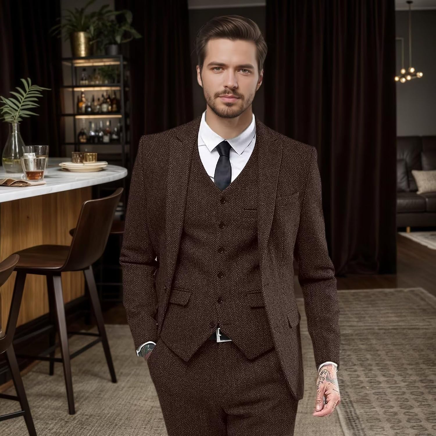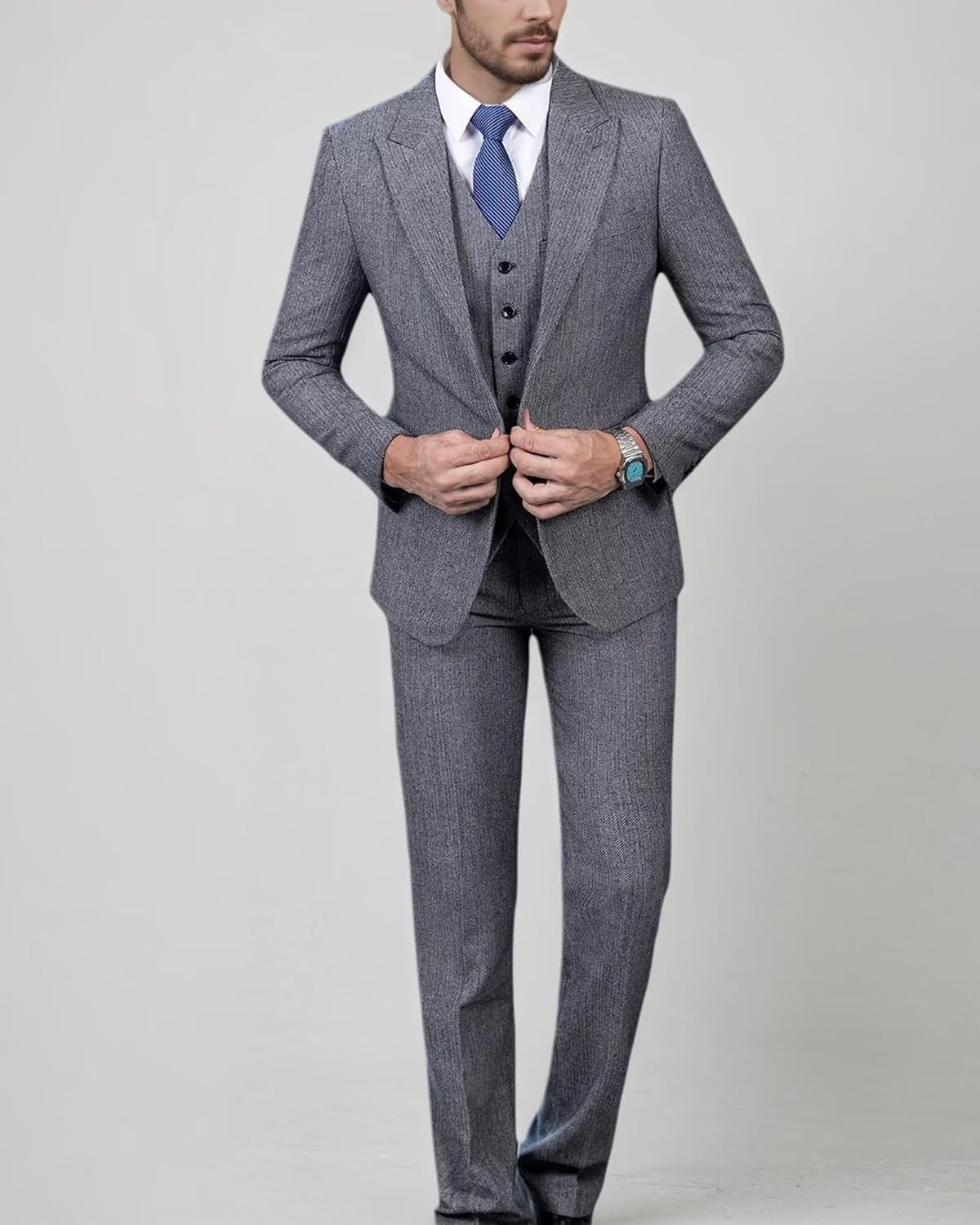 | Occasion Type | Herringbone Suit for Business, Herringbone Suits for Men Wedding, Mens 3 Piece Suit for Work, Mens Suits Classic Fit Prom, Tweed Suit Men for Party |