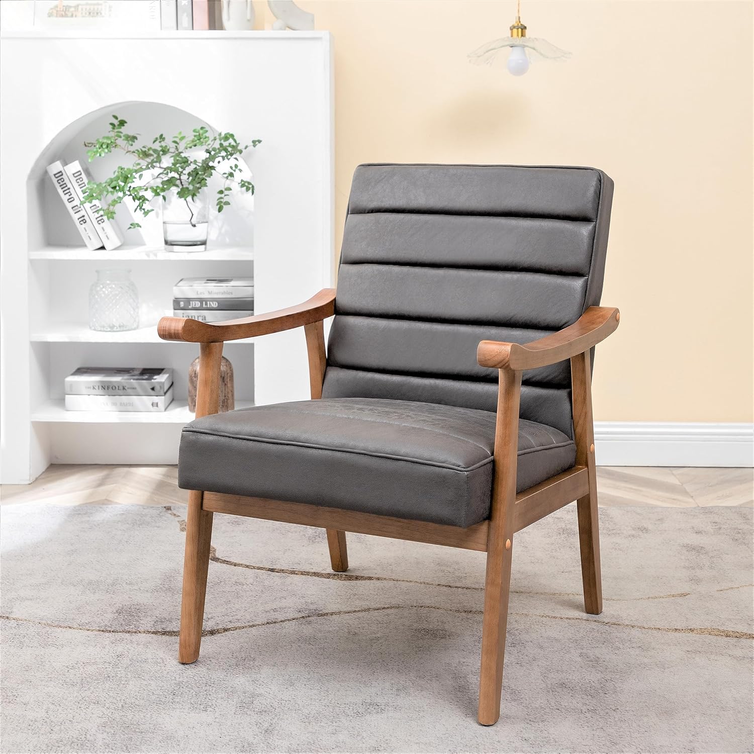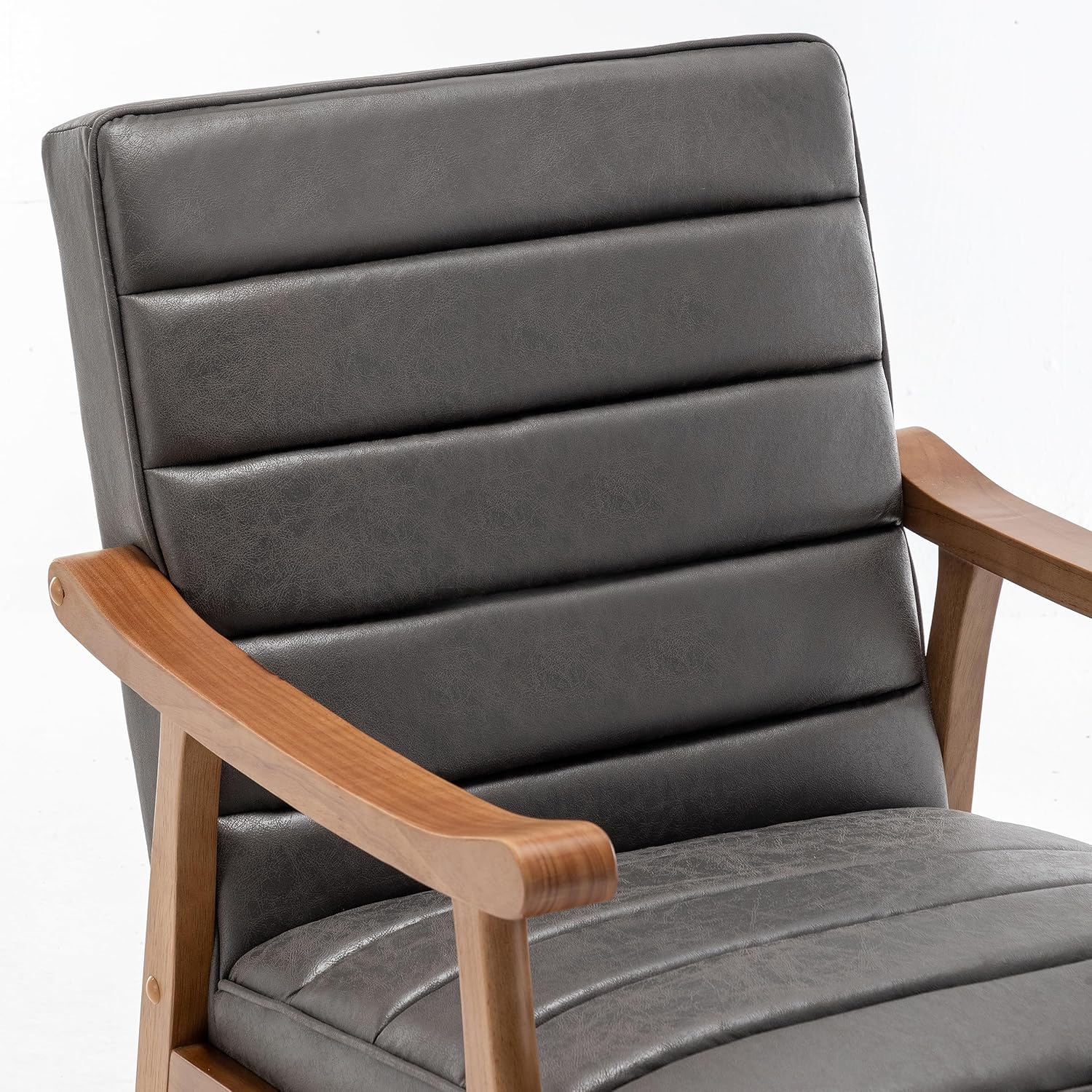 | Item Type Name | Mid Century Modern Accent Chair with Open-Framed Armchair Design, Plush Foam Cushioning, and Leather-Look Microfiber Seat and Back Cushions |