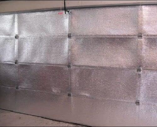 Kit Includes: 4 rolls of 2ft x 8ft (easily cut to fit 21inch panels or 24 inch panels) / Heavy Duty Double Sided Tape / Razor / Squeegee / Instructions EXTREMELY EFFECTIVE - reflect 97% of radiant heat, excellent resistance to Conductive flow of heat, creates an air pocket to obtain an R8 value insulation. TWO REFLECTIVE SURFACES - made of supreme quality material - 5mm closed cell Polyethylene-Air (not a cheap radiant barrier) sandwiched between PURE ALUMINUM (not a polyester film) on both sides. Two reflective surfaces, twice more effective. HEAVY DUTY DOUBLE-SIDED TAPE - comes with new and improved heavy duty double-sided tape, this tape can be used in Extreme hot and cold climates. ADDED VALUES - VAPOR BARRIER - Unaffected by humidity and moisture, SOUND BARRIER - excellent Sound Deadener. TEMPERATURE CONTROL- reduce the inside garage temperature by 8 degrees in summer and turn it into a comfortable place, Saves heating costs in winter, reduces heat loss through the garage.