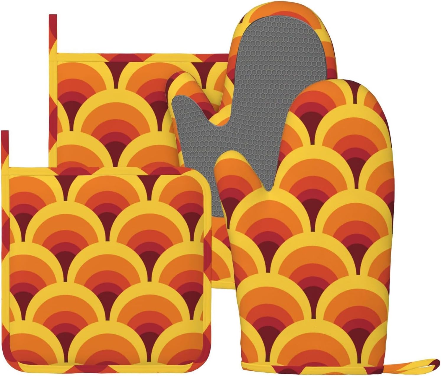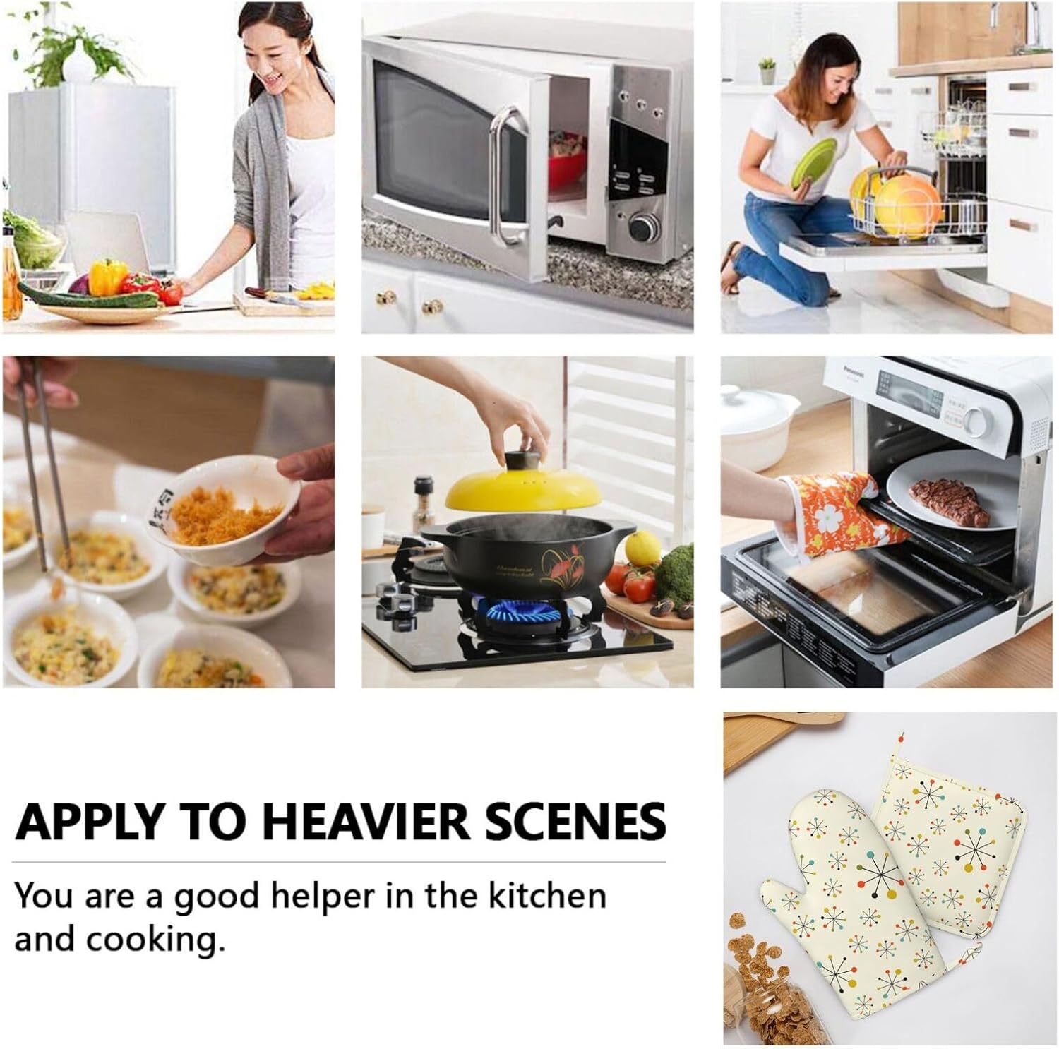 Cute kitchen silicone oven mitts with soft quilted cotton lining make it soft enough to ensure a flexible using experience. The oven mittens and hot pads are super heat resistant, preventing the forearm from being burned due to the hot outdoor grill. High-quality and durable, it provides you with more comfort when cooking, and can better protect your fingers, hands and wrists from burns. Perfect for all of your cooking needs.Package Including : 2 Oven Mitts, 2 Pot HoldersGloves Size: 11 x 7.2 inPotholders: 8 x 8 inApplicable Scenarios: Suitable for uncovering the lid in the kitchen, microwave oven, oven-end dishes and outdoor grilling, etc.Easy to Store: Both oven gloves and pot holders come with a hanging loop design, easy to storage after daily use.Great Gift for Mom Choice: Pot holders and oven mitts are kitchen essentials. It's great gift for mom, mother's day choice for festival and housewarming gifts. Pair it with other cooking utensils is also a fun and thoughtful gift choice.Washing Instructions: Hand wash, dry in shade.