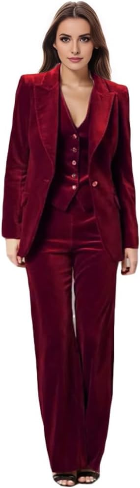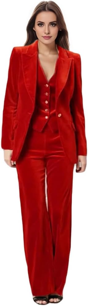 • Womens 3 Pcs Velvet Suits Velvet Suit Women including 1 Pc womens suits pants and 1 Pc Womens Suits Blazer and 1 Pc womens suits vest.Please refer to the size chart in the product pictures carefully before purchasing this 3 Pcs Velvet Womens suiting.if have any problems you can contact us we will reply you within 24 hours.