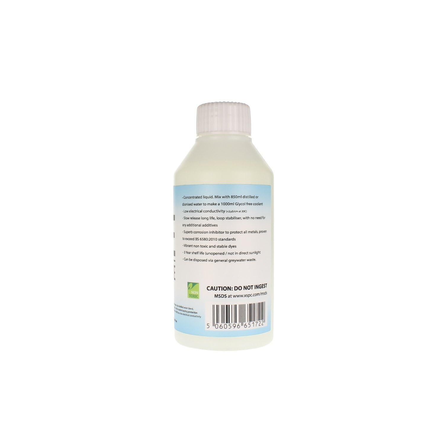 XSPC PuRE CONCENTRATE is a clean, eco-friendly concentrated coolant for PC water-cooling. It's base contains a refined 8 stage, triple distilled water blend with non-toxic corrosion inhibitors, and long life non-toxic dyes (except clear which contains no dyes). This needs to be mixed with 850ml distilled or deionised water to make a pre-mixed PuRE solution. It offers market leading protection for copper, brass, steel, nickel, aluminium and is safe to use on acetal, PETG and acrylic plastics. PuRE CONCENTRATE has an extremely low electrical conductivity and with its range of intense colours it's the perfect coolant for PC water-cooling. Mixing Directions: - Take a measuring jug and add 850ml of Distilled or Deionised water. - Gently shake your PuRE Concentrate bottle with the cap on. - Remove the cap, and the induction seal and pour into the measuring jug. - Stir the mixture gently for 10 seconds until you have a Pre-Mixed solution. - Empty into your favourite XSPC Filling bottle, and start filling your system. Can be stored as a Pre-mix solution in a none transparent bottle, sealed away from sunlight for up to 6 months (depending on how clean your mixing medium (water) is). usage Directions: Systems containing Solder, Copper, Nickel, Brass or Steel are fine to be mixed in the same loop. PuRE offers full protection once mixed at the correct ratio. Systems containing Aluminium MuST NOT be mixed with any other metal. PuRE offers full protection for Aluminium on its own, once mixed to the correct ratio. Note: This is a concentrated solution, DO NOT INGEST Made in the uK - Safe to mix with XSPC RECOLOuR Dyes - Glycol free Model: 5060596651722