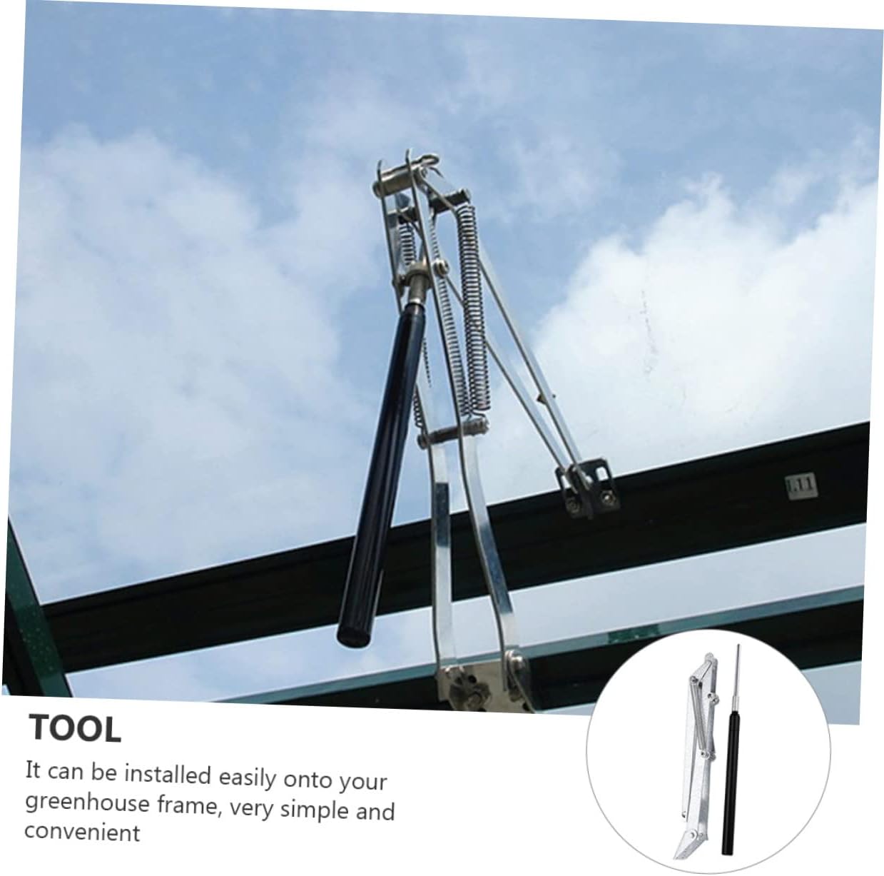 Package Include 1 x Automatic Vent Opener Characteristics -Material: Galvanized sheet, aluminum Auto Vent Opener -Size: About 34.00X12.00X5.00cm/13.36X4.72X1.97inch Automatic Vent Opener for Greenhouse -Color: Silver Double Springs Automatic Vent Opener -The window opener is made of materials, which is strong and sturdy. Greenhouse Automatic Vent Opener -The automatic ventilation window opener in the greenhouse cannot be used in an environment where the temperature is higher than 50°C Automatic Window Opener. -The maximum height of the open window is about 45 Window Opener. -It can be installed easily onto your greenhouse frame, very simple and convenient. Greenhouse Auto Window Opener -Great for variety of occasions, garden, flower room, farm, botanical garden, railway and greenhouse Greenhouse Automatic Window Opener.Goods Description Auto Vent Opener The window opener automatically opens and through the thermal induction of the temperature, maintains the growing temperature.Sturdy Automatic Vent Opener Auto-opening temperature range is adjustable from 15-25℃ by turning the cylinder.Durable Automatic Vent Opener for Greenhouse Use When the temperature changes, the vent opener can automatically stretch or contract the vent
